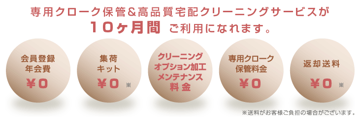 保管サービスは、最大10ヶ月間クリーニング料金だけで利用できます。